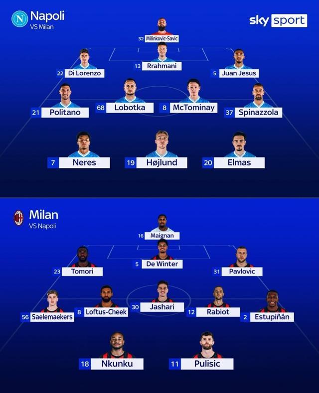 北京时间12月19日03:00,意超杯半决赛的一场对决。那不勒斯坐镇沙特国王大学体育场,迎战AC米兰。赛前,双方的阵容公布如下: