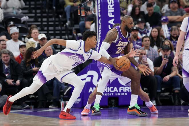 詹姆斯在32分半投篮17中8拿28分7板10助 湖人143-135战胜爵士